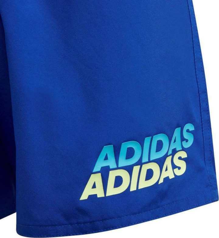 - Colorblock kids’ swimsuit! The swim shorts, for boys, feature an elastic waist with a drawstring for a perfect fit and a pocket at the back that closes with a hook and loop. The adidas logo completes the beach style.