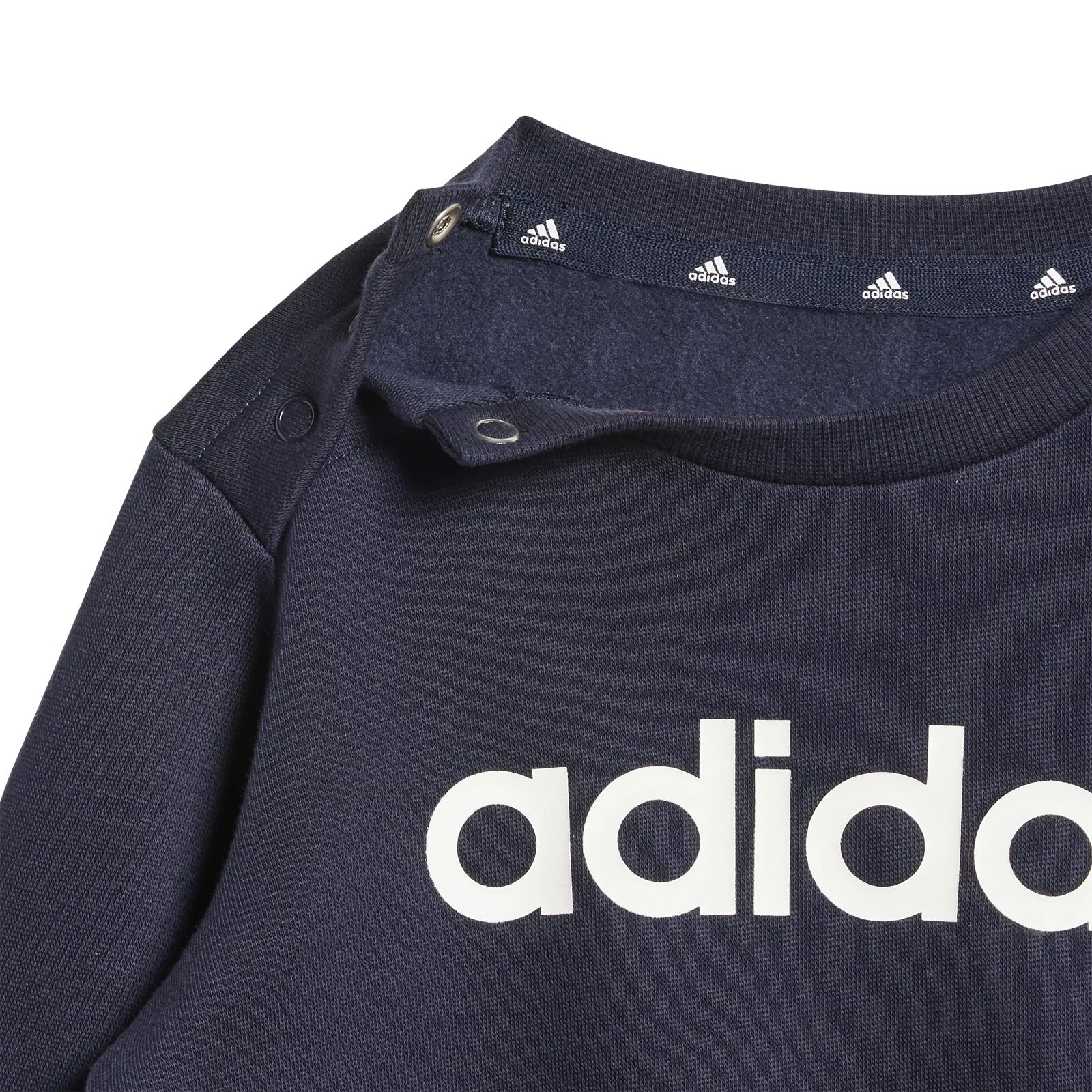 - Top: Ribbed round neckline with snap buttons on the shoulder