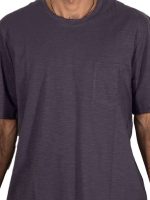 - Features a round neckline