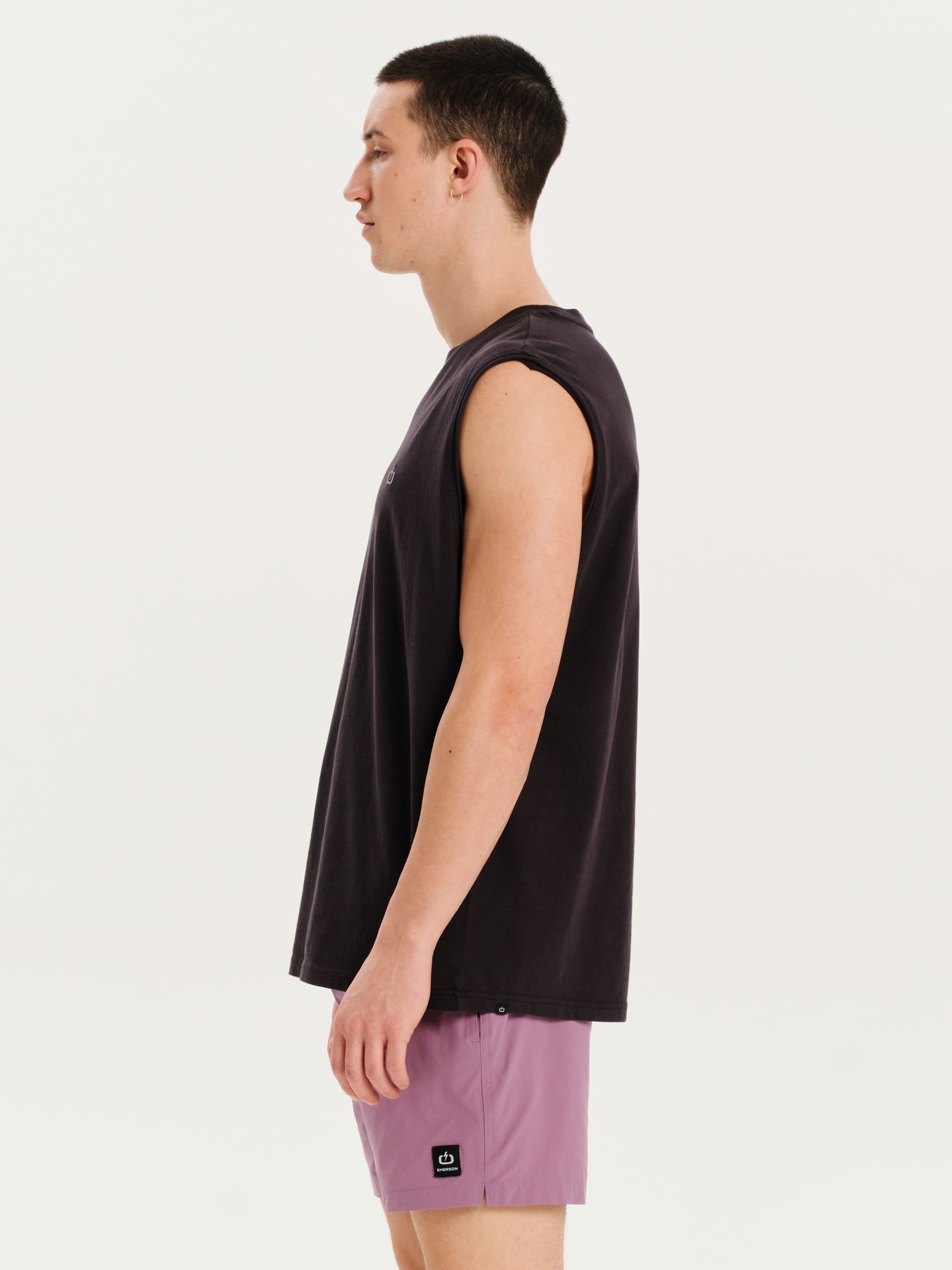 this basic tank features a simple EMERSON embroidery at left chest – the perfect tee for any situation. Made with 100% cotton fabric, raw edge armholes and a regular fit for extra comfort