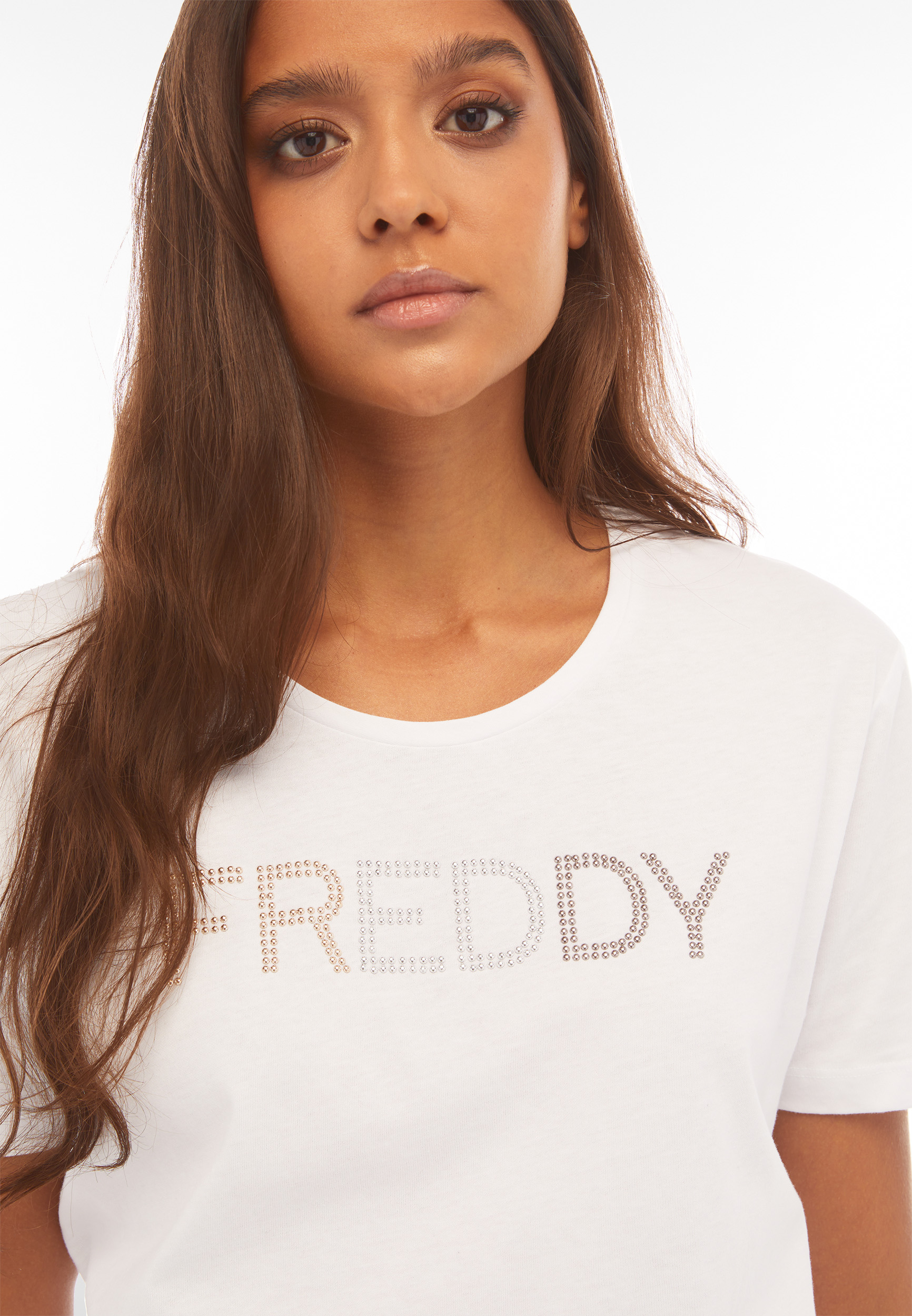 Το σχέδιό του περιλαμβάνει κόψιμο που ακολουθεί απαλά το σχήμα του σώματος και διασφαλίζει ελευθερία κινήσεων. Φτιαγμένο σε τρεις διαφορετικές αποχρώσεις, τα μεταλλικά καρφάκια που διαθέτει σε συνδυασμό με το λογότυπο FREDDY στο κέντρο της μπλούζα