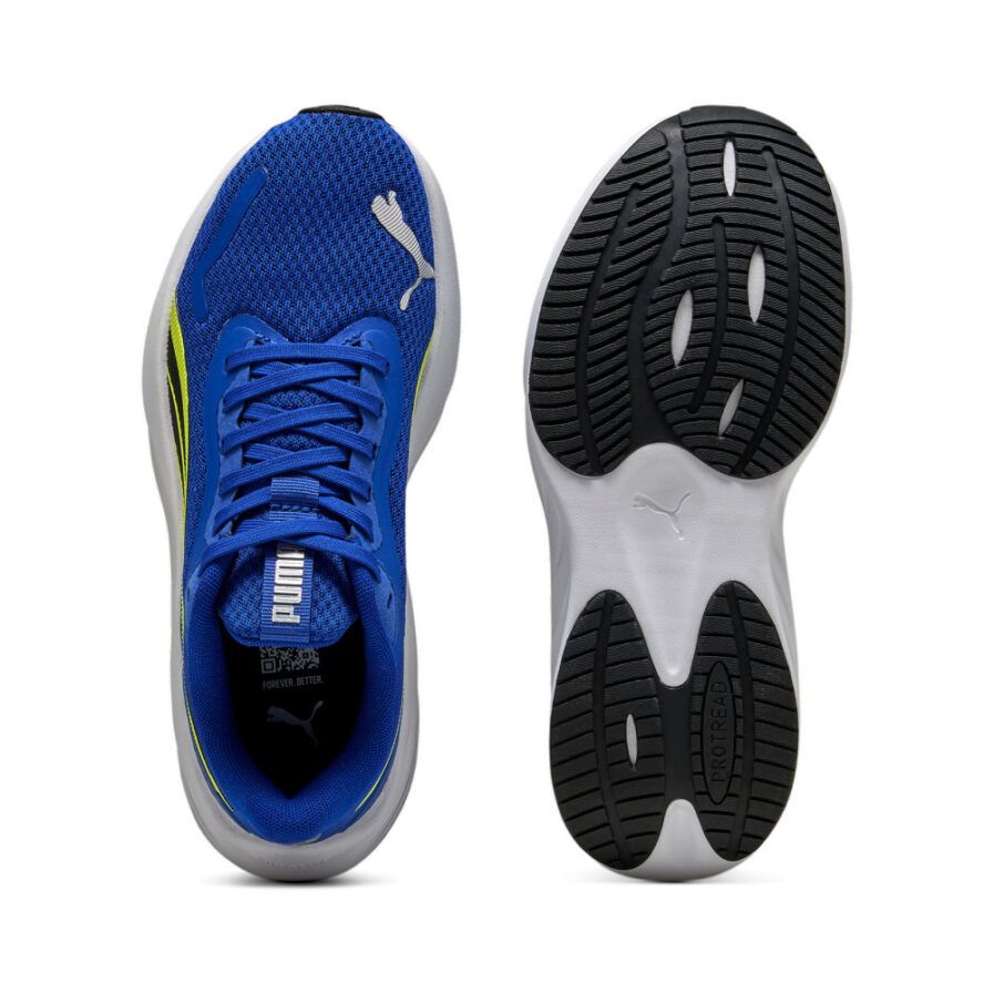 Το επάνω μέρος από διαπνέον mesh προσφέρει σωστό αερισμό του ποδιού και άνετη εφαρμογή, ενώ η ενδιάμεση σόλα με PUMALITE foam προσφέρει ελαφριά αντικραδασμική προστασία και άνεση σε κάθε βήμα. Η αντικραδασμική προστασία είναι μεσαίου επιπέδου, προσφέροντας ισορροπία μεταξύ απορρόφησης κραδασμών και ευελιξίας.